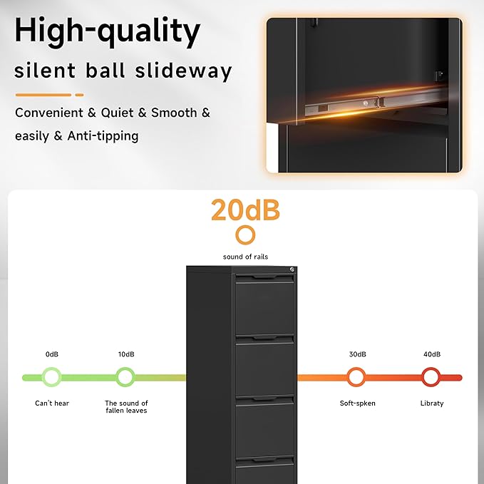 - đ§©ăSMOOTH MUTE SLIDE RAILSă: Our metal file cabinets are made with full retractable mute slide rails, open and close smoothly, easy to pick up and put down folders without noise. Perfect for office, home and school use. And the vertical appearance design can maximize the effective use of space, so that your space is not wasted!