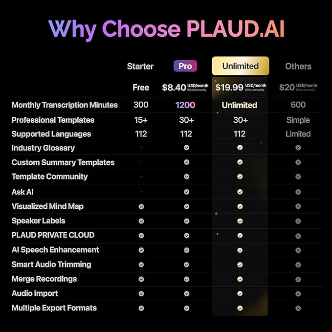 - YOUR PRIVACY COMES FIRST: Local data encrypted, cloud files exclusive to you, with data processing only upon your authorization. PLAUD App and Web portal offer unlimited cloud storage. Effortlessly manage audio files, sort them, and share recordings, transcriptions, and summaries with ease. Enhances team collaboration through transcription and summarization features