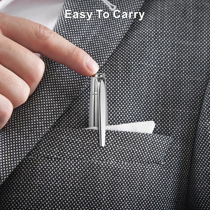 - Sleek Metal Pen: Features a sophisticated brushed metal barrel design. Perfect professional pens for men, executives, business professionals, office use, college students, flight attendants, law enforcement, guest signing, journaling (no bleed-through), and coworker gifts as police pens, guest pen, fancy pens, pens for journaling
