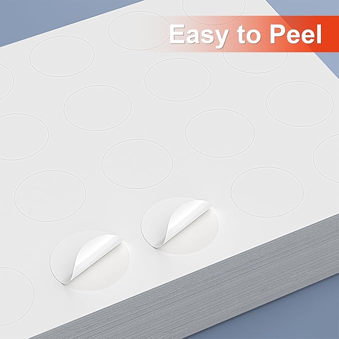 Methdic 1.5" Diameter High Visibility Printable Round Labels,Matte White,600 Customizable Blank Stickers