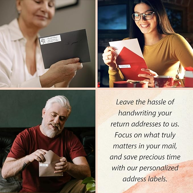 - Elegant High Gloss Finish: Our personalized address labels feature a luxurious high gloss finish that not only enhances the vibrancy of each design but also makes your mail stand out. The sophisticated sheen adds a touch of class to every envelope, ensuring your correspondence is noticed and remembered.
