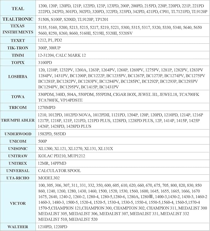 - Compatible Models - Rigorous testing ensures compatibility and reliability for most printing calculators that use ribbon spools, such as Canon, Casio, Sharp, and Victor.