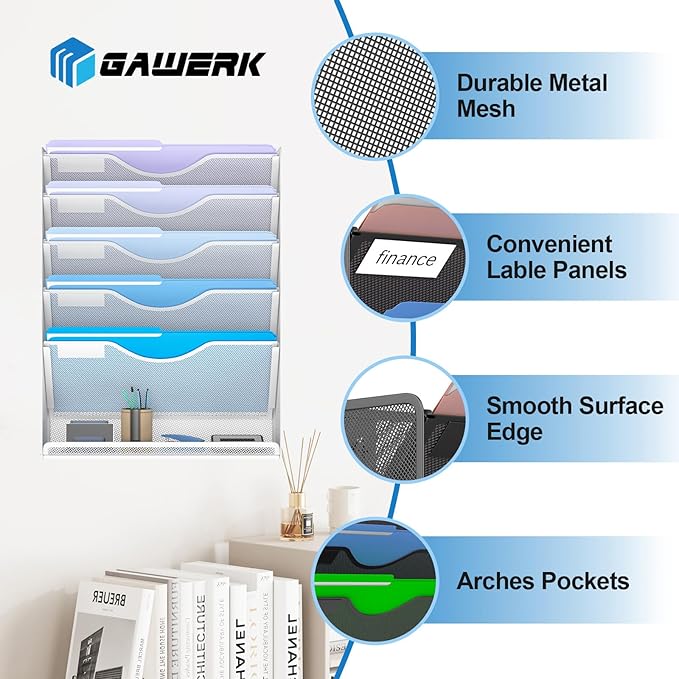- ✏️ Sturdy Metal Structure: Wall file rack organizer is made of high-quality metal material with sturdy metal construction and durable powder-coated surface.