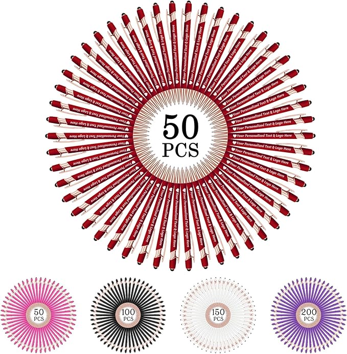 STREADVE 50 Personalized Custom Pens Engraved Writing Pen with Name Logo, Customized Promotional Items Stylus Pen Gifts for Communion Wedding Men Women Realtor Business, Deep Red