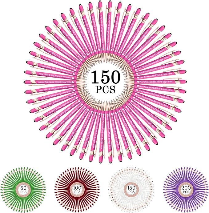 STREADVE 150 Personalized Custom Pens Engraved Writing Pen with Name Logo, Customized Promotional Items Stylus Pen Gifts for Women Realtor Quinceañera Wedding Business, Pink