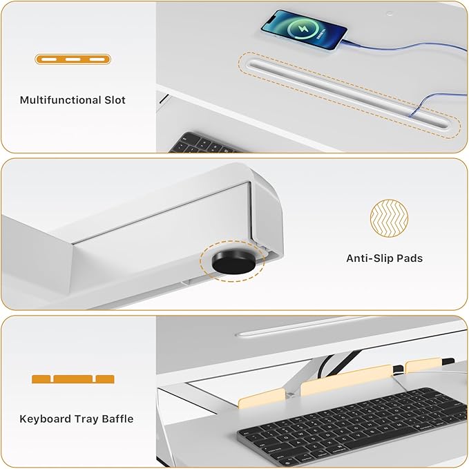 - Sturdy & Stable Adjustable Desk: Crafted from durable particle board and patented X-shaped frame, ensuring rising desk converter has the capacity to hold up to 28.6lbs on the top tier and up to 4.4lbs on the lower tier