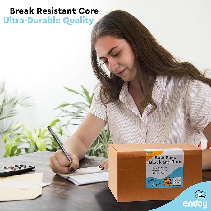 Enday Ballpoint Pens Bulk Blue and Black Pens (400 Pack) 200 Black & 200 Blue - Medium Point (1.0mm) Flexible Round Barrel For Writing Comfort, Pens Bulk for School, Home and Office.
