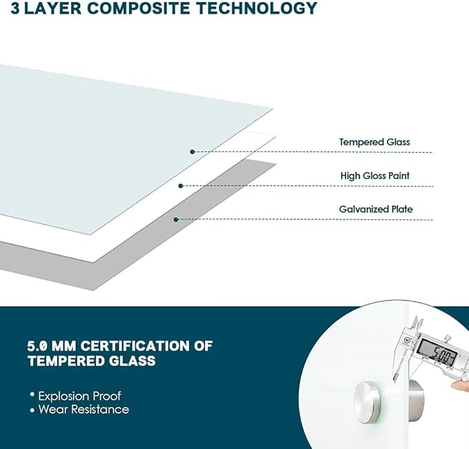 - 【ENVIRONMENTAL & LONG-LASTING】: The strong durable tempered glass surface resists stain and ghosting. Designed with 5mm thickness, rounded corner, and smooth edges. Cleaner, safer, and longer-lasting than traditional whiteboards