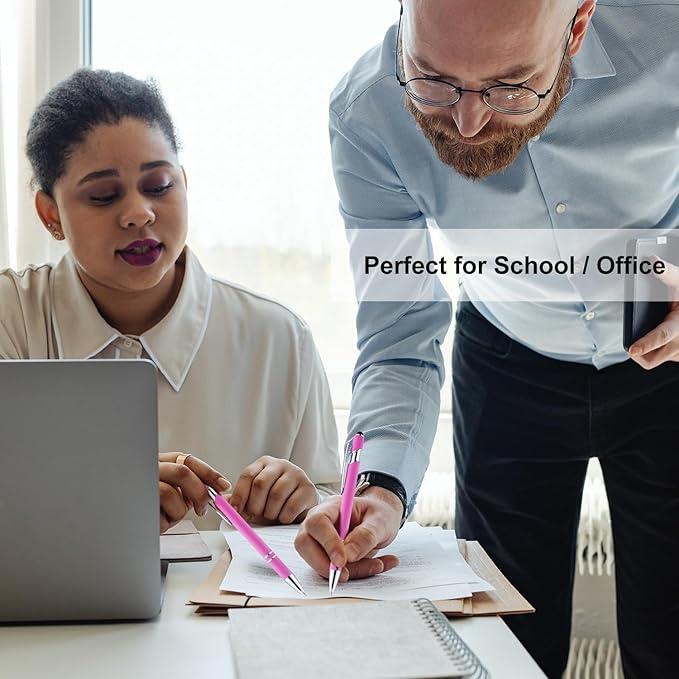 LINFANC 12 Pack Pink Ballpoint Pen with Stylus Tip, 1.0 mm Black Ink Smooth Writing Pens, Metal Stylus Pens for Touch Screens