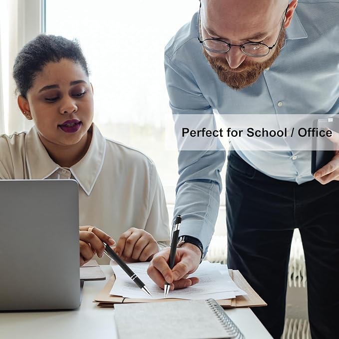LINFANC 12 Pack Ballpoint Pen with Stylus Tip, 1.0 mm Black Ink Smooth Writing Pens, Metal Stylus Pens for Touch Screens