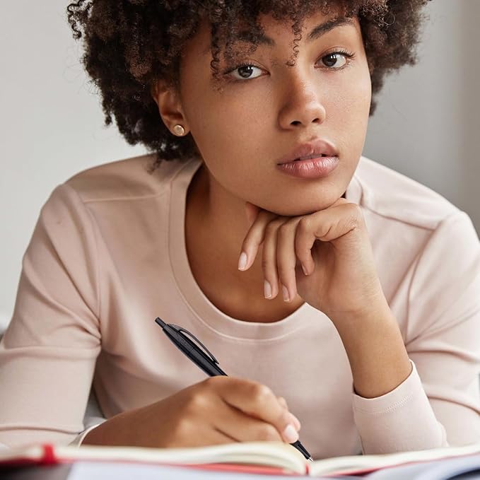 - COMFY: Soft textured rubber grip for comfort. Anti-slip ensures fatigue-free extended use. Retractable design for quick, Easy writing with a click. Click pens bulk