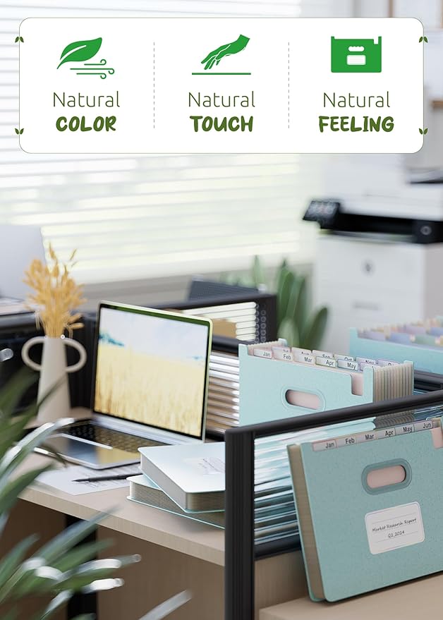 - 【Natural Color Selection】EcoStash wheat straw Expanding File Folder have a unique texture and appearance. Available in 4 colors: Mint Green, Sky Blue, Wheat Yellow, and Lavender Purple. Using different colors allows you to easily organize and distinguish documents. Its outstanding aesthetics allow you to experience the breath of nature in your daily use, adding a unique style to your document organization and protection.