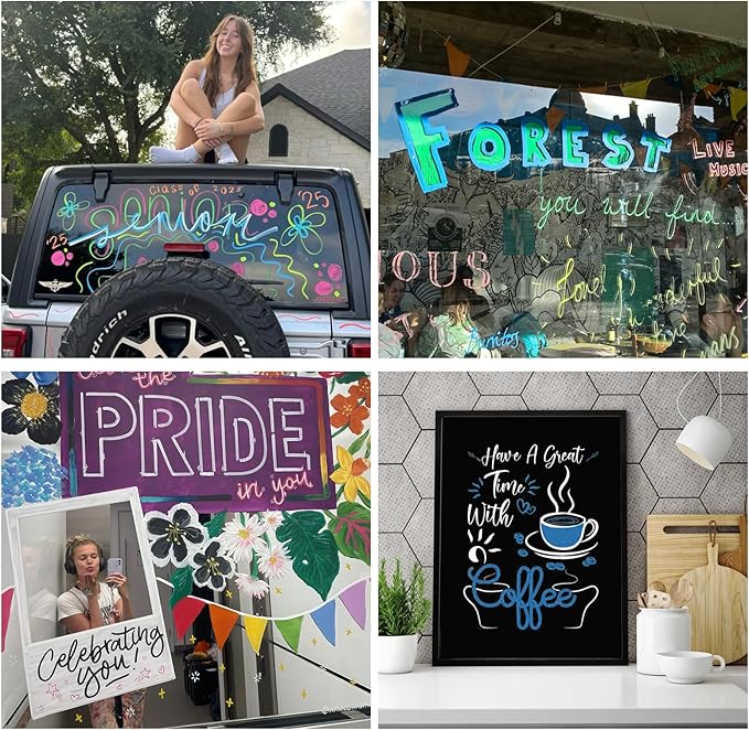- MULTI-SURFACE USE: Our liquid chalk pens adhere perfectly to multiple surfaces, such as chalkboard, windows, glass, ceramic, calendar, mirror, blackboard, car windows and other non-porous surface. Perfect for students, teachers, artists, kids, adults, home decor enthusiasts.