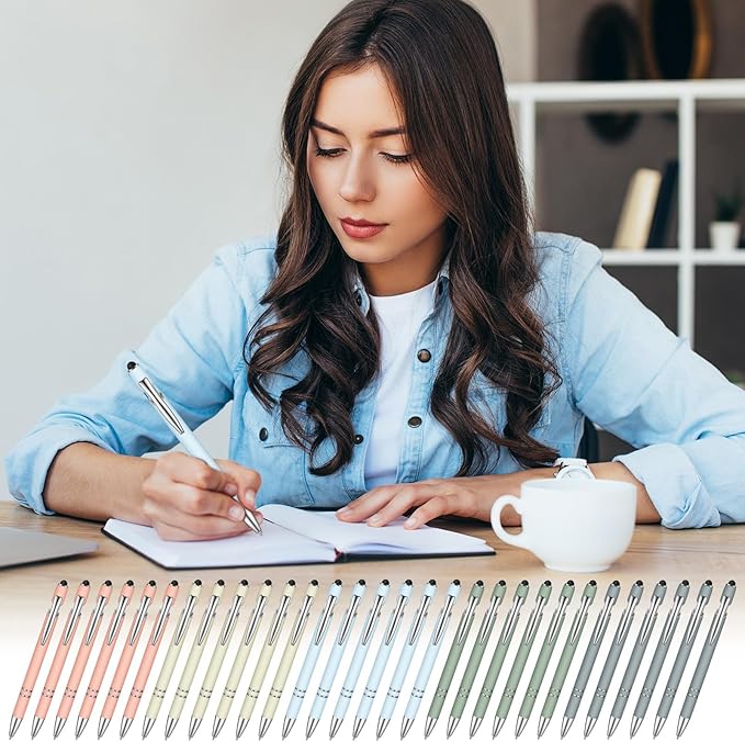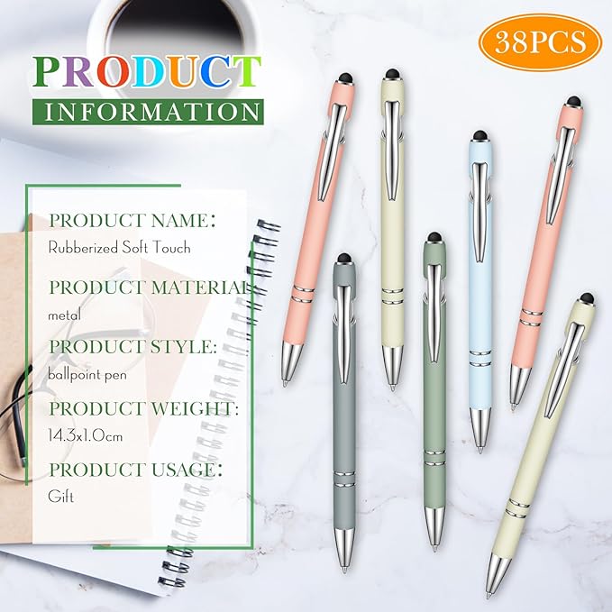 Zonon 38 Pieces Rubberized Ballpoint Pen with Stylus Tip Stylish Metal Pen Capacitive Styli with Soft Rubberized Grip, Black Ink for Most Devices(Morandi Colors)
