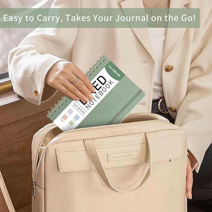 AHGXG Lined Spiral Journal Small Notebook for Women, Notebook College Ruled A5 5.7" X 8.3", 140 Numbered Pages, Hardcover Leather, Meeting Notebook for Work, School Office Supplies, Sage Green