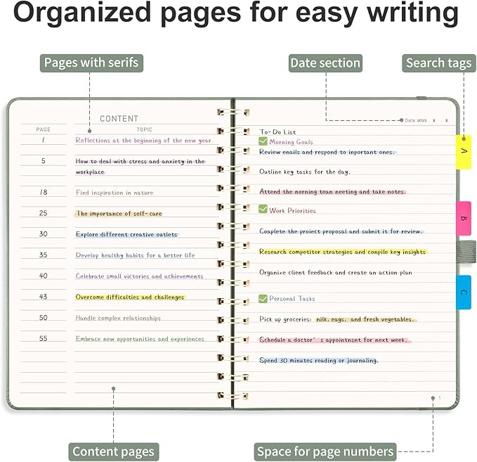 - ORGANIZED AND PRACTICAL NOTEBOOK: Our lined spiral notebook features 140 numbered pages and 4-page blank table of contents. In a medium A5 size 5.7" × 8.3", providing ample writing space while remaining lightweight and easy to carry
