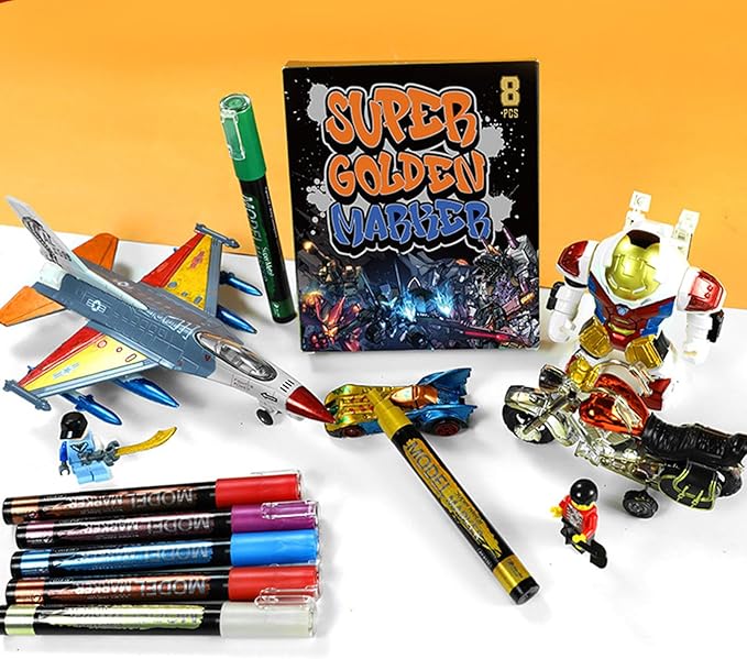 - 8 Vibrant Glitter Colors: 8 metallic paint markers with different colors and shining metallic glitters, including green, blue, orange, purple, silver, gold, fire red and flash red glitter marker pens; Multi-color combinations can satisfy your creative needs; Compared to ordinary metallic paint pens, our super golden markers deliver a richer and more brilliant metallic effect, adding a luxurious touch to your artwork. These metallic markers are ideal for adding a sparkling metallic sheen to your projects, making them glitter and stand out with unique vibrancy and depth