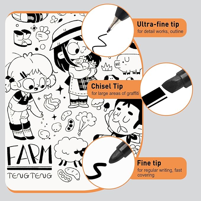 - 🖍️NOTES: To increase the life of ink, please cover the pen cap in time after use, pay special attention to placing metallic markers horizontally after use.