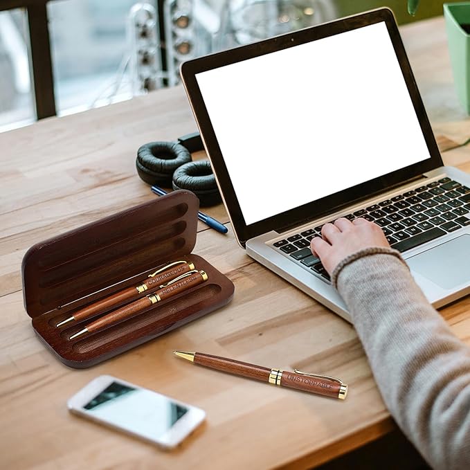 Fancy Wooden Pens Set with Box Congratulations Gifts for Women Men New Job Promotion Gift for Coworkers Boss Lady Office Business Pen Nice Positive Writing Pens Journaling Luxury Engraved Pens