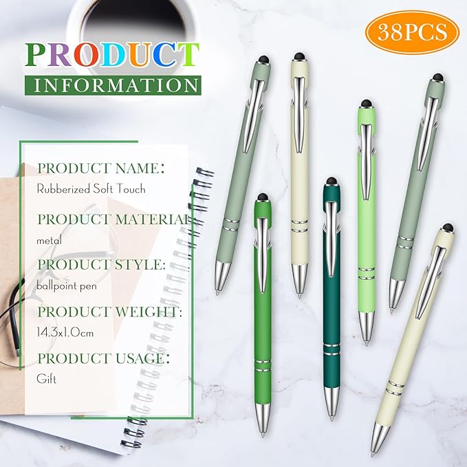 Zonon 38 Pieces Rubberized Ballpoint Pen with Stylus Tip Stylish Metal Pen Capacitive Styli with Soft Rubberized Grip, Black Ink for Most Devices(Charming Colors)
