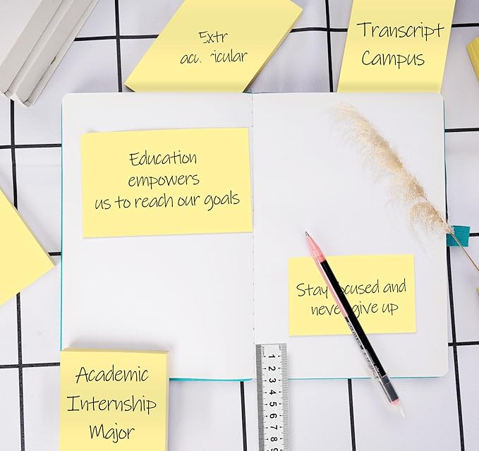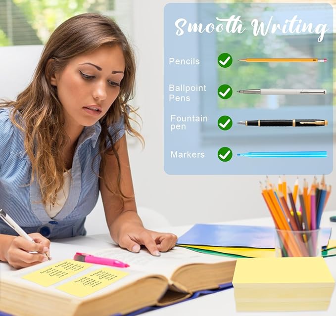 - High Quality Paper - 3 x 5 Yellow Sticky notes pads made with 80 GSM thicker paper, flat sticky notes bulk are strong, stay on any surface without curling. Smooth writing, No ink-seepage. Each pad boasts top-notch quality, ensuring your messages stand out with elegance and clarity.