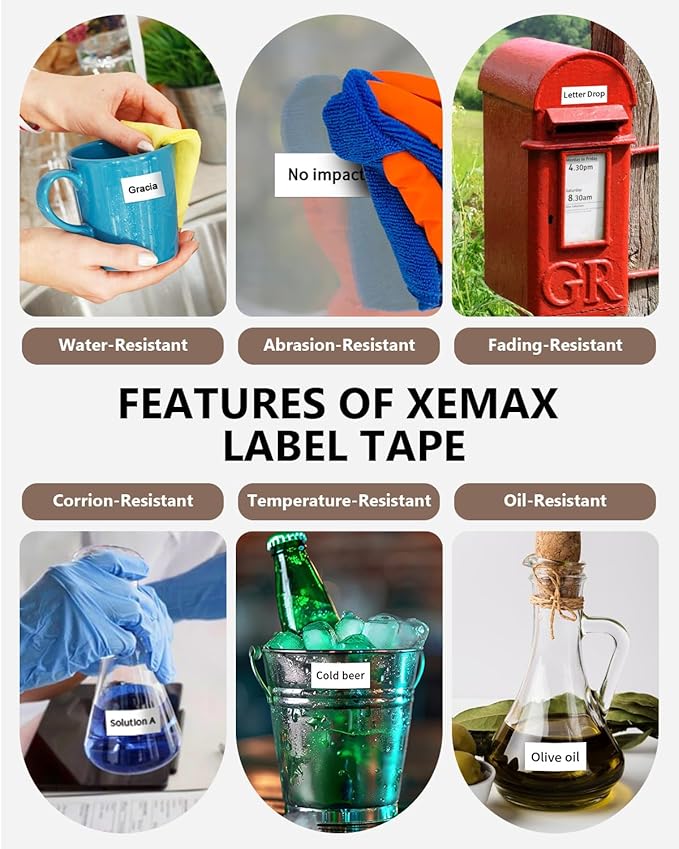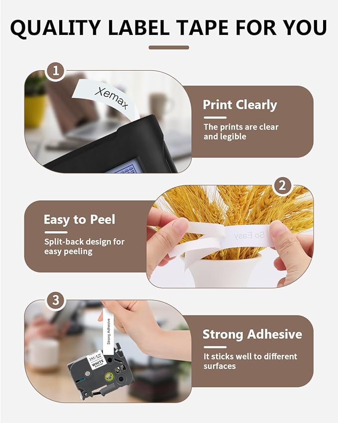 - Features: (1) Tze Tz Tape 18mm 0.7" Laminated white Label has strong adhesive, and no sticky residue when you remove the 18mm labels. (2) Split-back of tze 18mm 3/4" white label tape for easy to peel and apply. (3) These p touch label tapes are Water Resistant, Chemical Resistant, Abrasion Resistant, Fade Resistant, Temperature Resistant, and Print clear