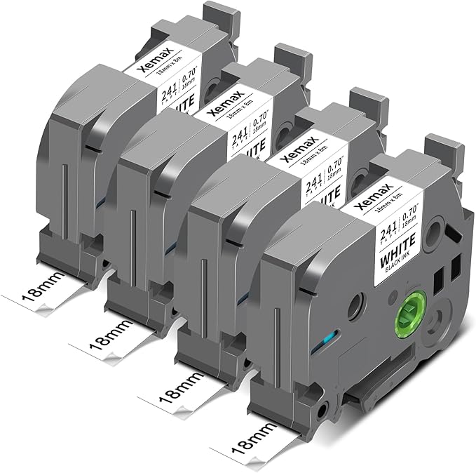 4-Pack 18mm 0.7" Laminated White Compatible for Brother Tze-241 Tze241 Tze241 Tz-241 Tz241 3/4" PTouch Tape Tze Tz 18mm 0.7 Laminated White Label Tape for PT-D400 PT-D410 PT-D600 PTD-610BT