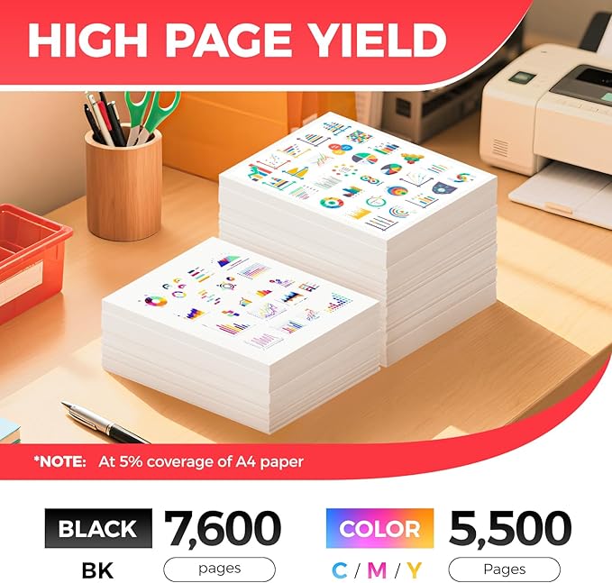 - High-Yield: up to 7,600β¬ pages per 069H Black and 5,500 pages per 069H Color (Total 24,100 pages, 5% coverage)