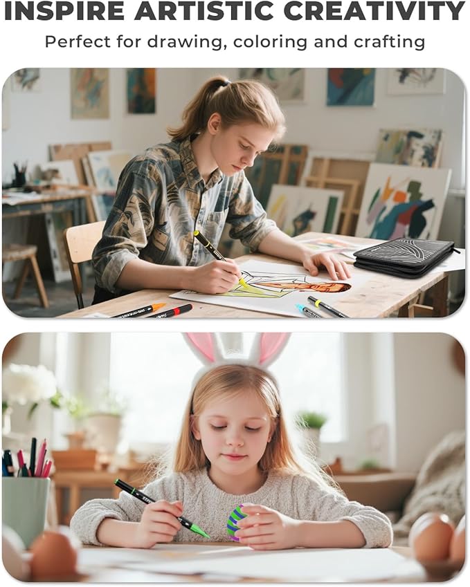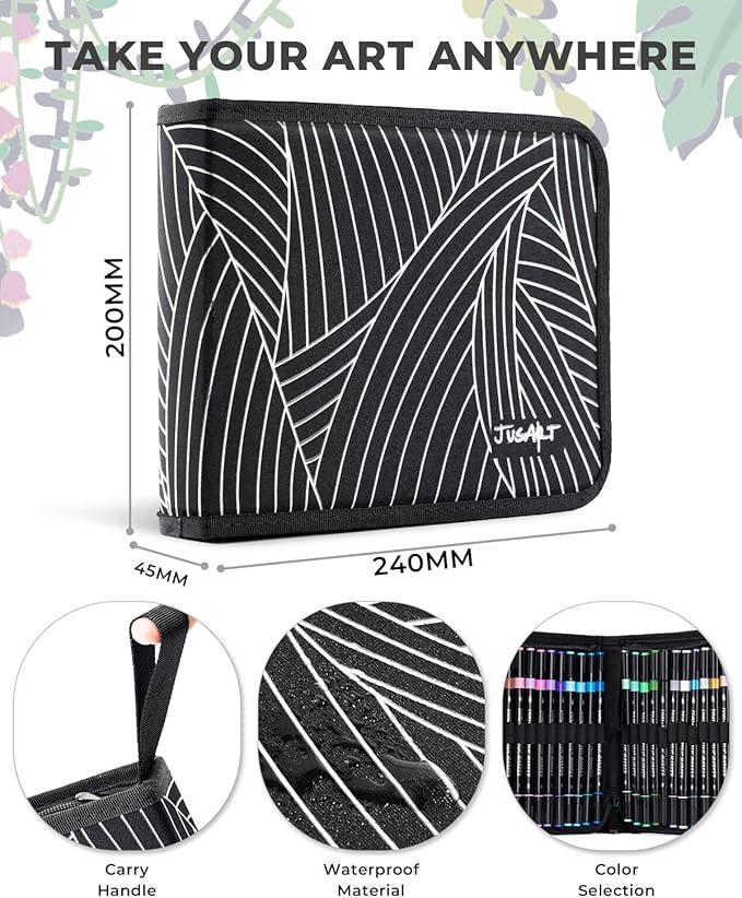 - Portable Art Bag Design: Keep your markers organized with the high-quality, waterproof, and uniquely designed expandable art bag. It ensures that each marker color is clearly visible and easy to access, preventing loss. With a zipper and handle strap for easy grip and portability, itβs perfect for adults, making it an essential art supplies