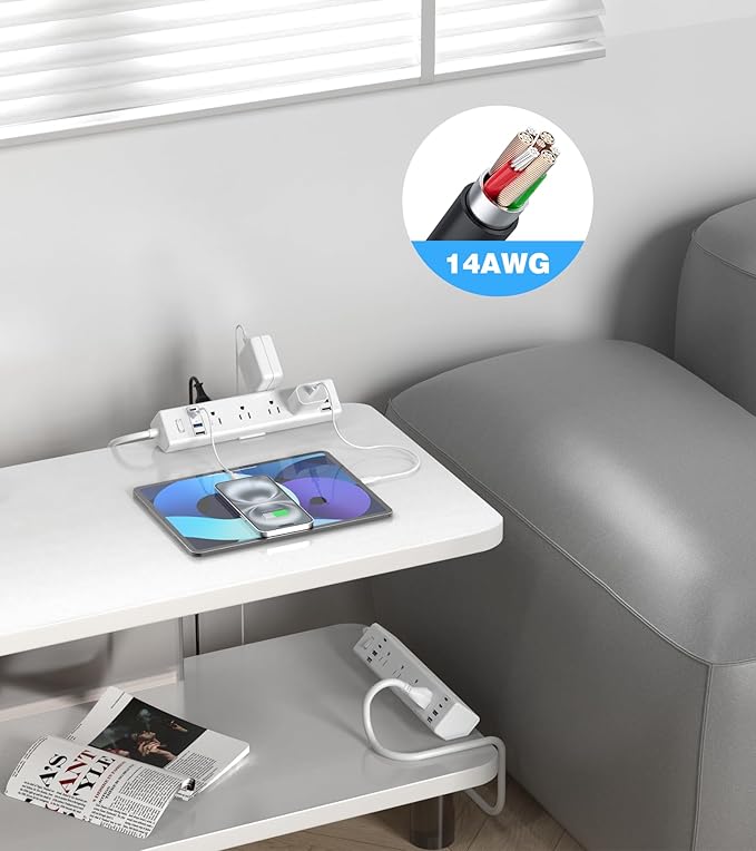 - 【Desk Clamp Power Strip with Surge Protection】Constructed from fire-resistant ABS plastic, this power strip offers a 1200-Joule surge protection rating with a built-in circuit breaker to guard against overloads, short circuits, and overheating. Effectively handles voltage spikes to keep your computer and other accessories safe.