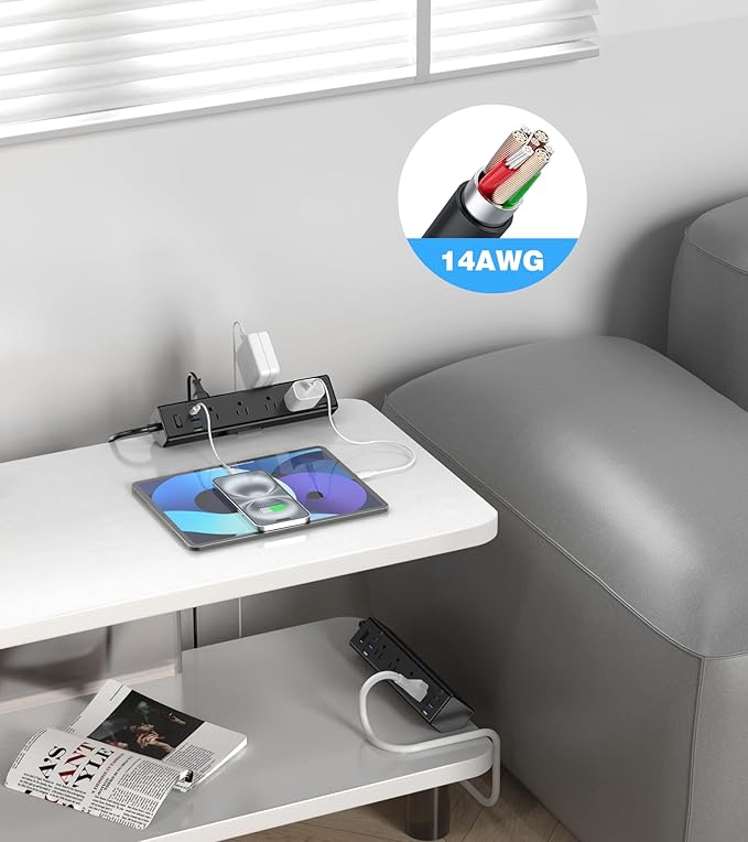 - 【Desk Clamp Power Strip with Surge Protection】Constructed from fire-resistant ABS plastic, this power strip offers a 1200-Joule surge protection rating with a built-in circuit breaker to guard against overloads, short circuits, and overheating. Effectively handles voltage spikes to keep your computer and other accessories safe.