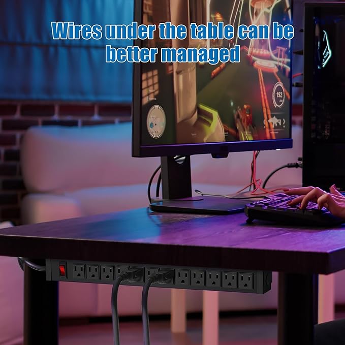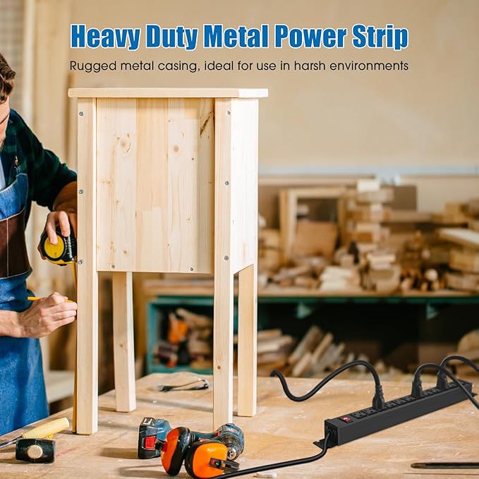 - 12 Outlet Mountable Power Strip: 12 outlets for more of your needs, with a 10-foot 14AWG power cord and 15A high current, max power: 60Hz/125V/15Amp/1875W. Package includes 4 mounting screws.