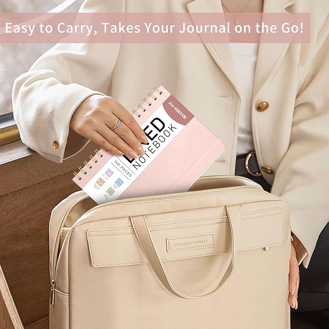 - ORGANIZED AND PRACTICAL NOTEBOOK: Our lined spiral notebook features 140 numbered pages and 4-page blank table of contents. In a medium A5 size 5.7" × 8.3", providing ample writing space while remaining lightweight and easy to carry