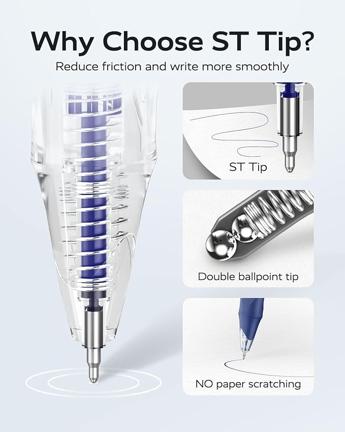 - [Super Thin Tip]: The double ballpoint tip design reduces friction, the ink pen flows smoothly and glides effortlessly without scratching the paper, offering smooth and comfortable writing experience
