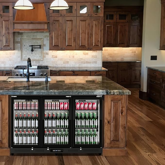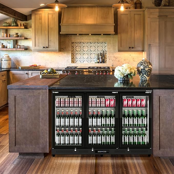 - 〔Durable, Secure, and Energy Conscious〕Crafted for durability, your Frostronics triple hinged door Back Bar Cooler features a rugged side-by-side hinged door design and an automatic defrost system to ensure long-lasting performance. Built-in locks on each door add an extra layer of security, safeguarding your beverages from unauthorized access. Additionally, the doors are equipped with an automatic closing mechanism to prevent energy loss, keeping operating costs low while maintaining optimal cooling.
