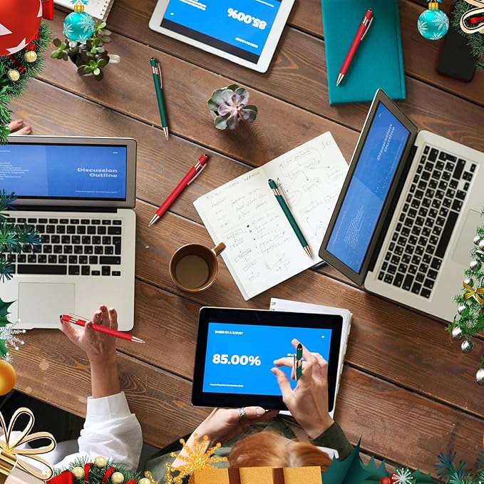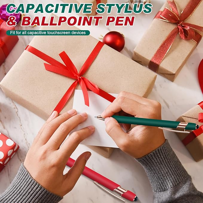 Tenare 12 Pieces 2 in 1 Stylus Metal Ballpoint Pen with Stylus Tip, 1.0 mm Black Ink Ballpoint Pen for Touch Screens(Red and Green)