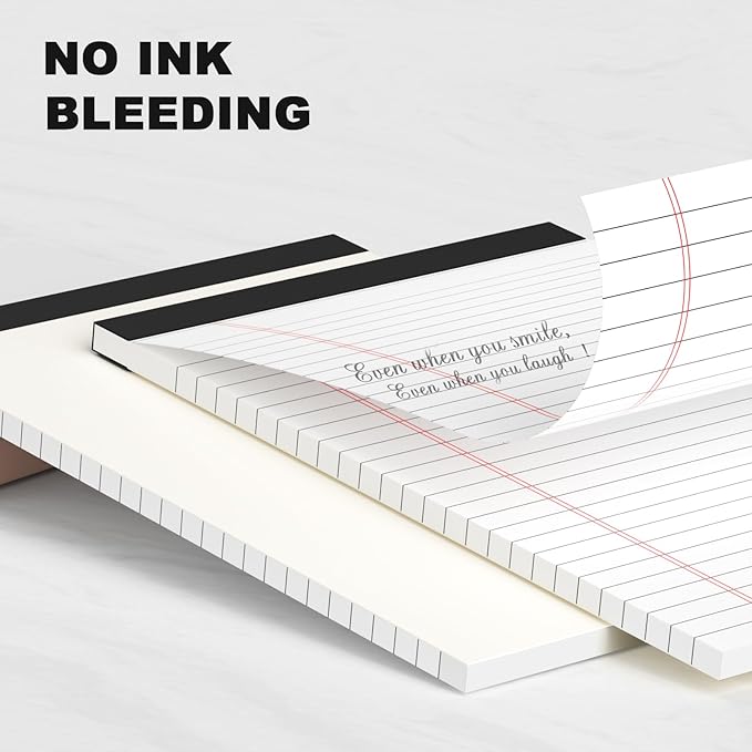 - Legal Pads 5 x 8 Inch feature premium-weight 80gsm thick paper with black lines and double red margin lines, providing ample space for your notes. The smooth, white paper allows your pen to glide across the page, resisting ink bleeding and show-through. These notepads are thicker than average for a luxurious writing experience with minimal ghosting.