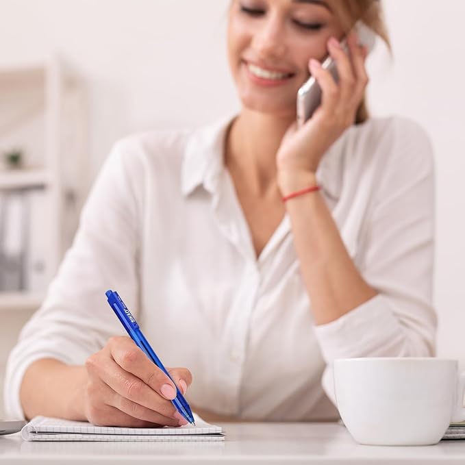 - COMFORT: A flexible round pen barrel for ultimate writing comfort, a blue translucent barrel that lets you easily check the remaining ink level.