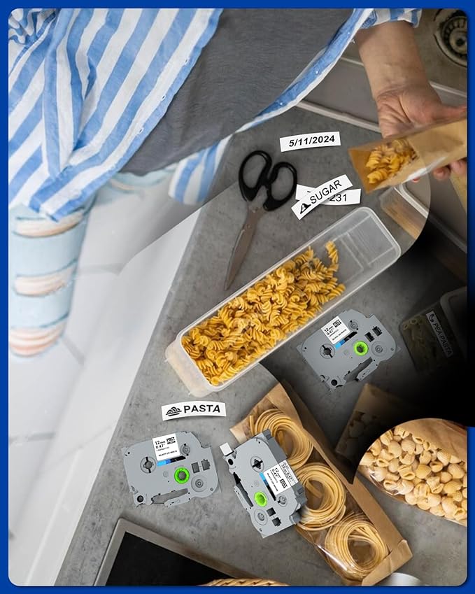 - 【 P Touch Label Tape Wide Applications】-Use ▶ Item Differentiation, Date Labeling, Operation Tips, Price Labeling, Personal Items Labeling, DIY Blessing Language and more.-Scene ▶ Home, Office, School, Hospital, Government, Hotel, Restaurant, Factory, Bank, Laboratory, Warehouse, Farm, Repair Shop,Stores, Supermarkets and more.