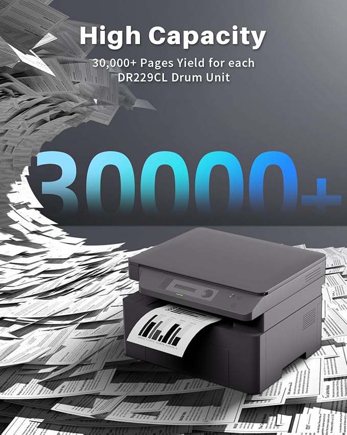 - 4. Cartridge Yield (approx.): Up to 30,000 pages per DR-229 DR229CL drum unit (5% coverage of A4 paper)