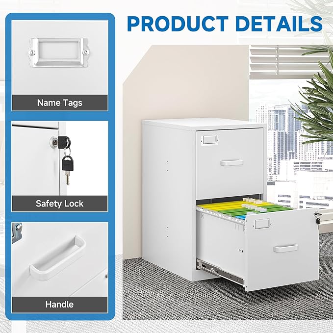 - 【HIGH CAPACITY】This vertical file cabinet for home office has 2 drawers of large storage space, fully retractable ball bearing drawer slide rails for easy access to all folders, file drawers with adjustable hanging rods can hang letter size hanging folders to let your files Well organiz