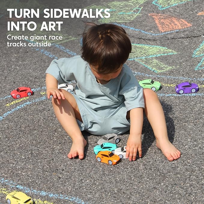 - Super Value Pack: Includes 24 pieces of race car shaped chalk in 12 vibrant colors, great for kids to enjoy art, drawing, and painting on sidewalks, chalkboards, or other creative surfaces. Motivate creativity in every masterpiece!