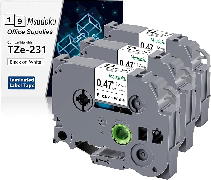 - These compatible for brother label maker tape 12mm 0.47 tape have strong adhesive and no sticky residue when you remove it. The split back design of ptouch label tape 12mm white tape is very easy to peel off