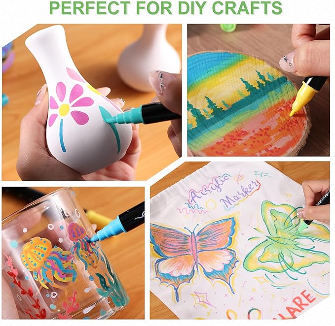 - Upgraded Waterproof and Easy to Use: Unlike ordinary push-type acrylic pens, our craft supplies acrylic paint pens require no shaking or pressing to use. Just open the cap and start creating. Made with professional-grade acrylic paints, odorless and non-toxic, vibrant colours, fast drying, non-fading, smooth flow without leakage, strong coverage and waterproof. It's the perfect choice for maintaining the vividness and beauty of your art works.