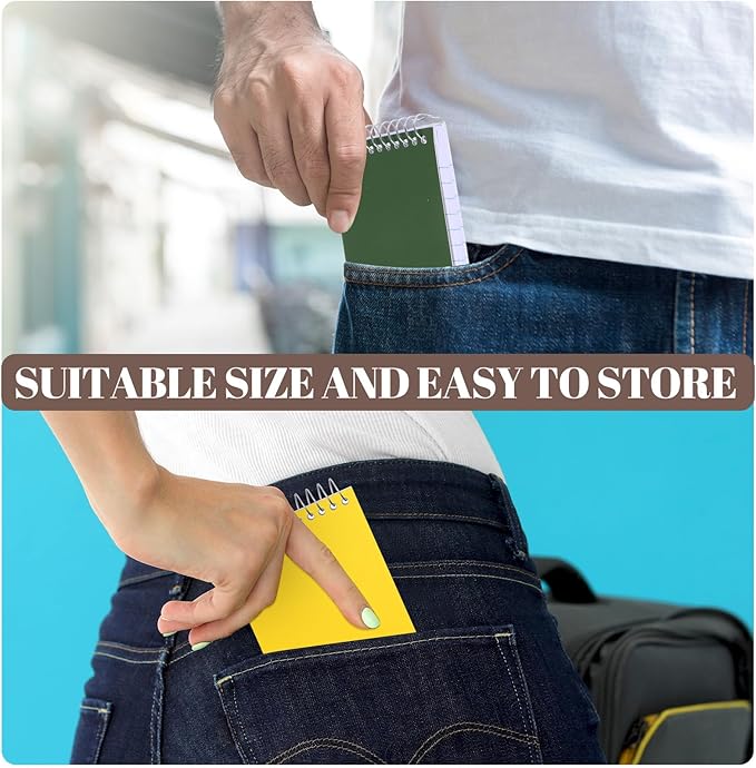 - Top Spiral Bound: each pocket memo pad adopts top spiral binding, so the page can lay flat for a more comfortable writing condition for right or left handed users; And the unobstructed spiral binding design won't hang up on clothes or backpacks, very thoughtful