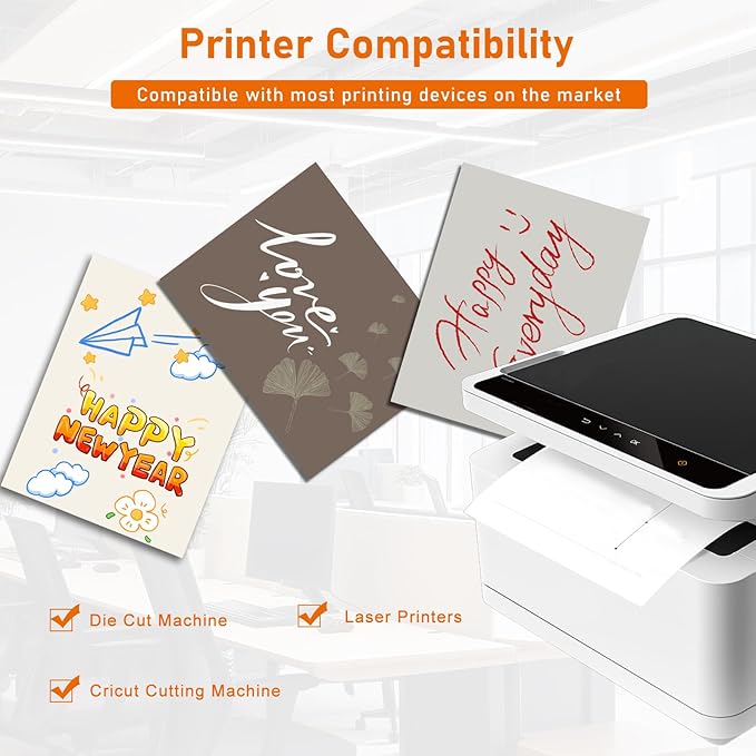 - Printer Compatibility:our thick printer paper card stock is compatible with most types of laser printers, inkjet, die-cutting machines, and cricut cutting machines. Please ensure that your printer can print on 250gsm before ordering