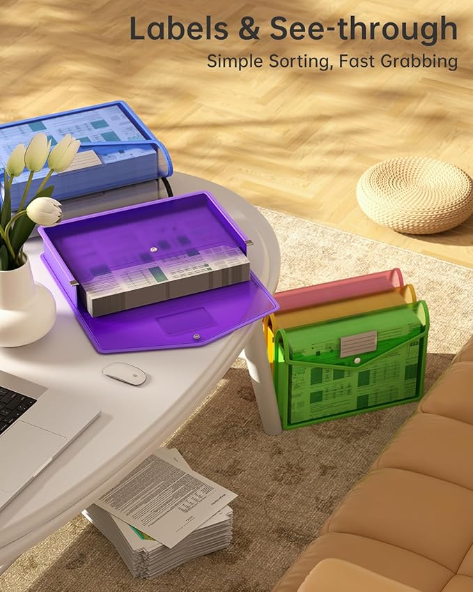 - 【Multiple Function】Plastic expanding file folder Widely used in school office or homes. Suitable for daily filing and storing of documents on desk and shelf top use, making all your files simple to retrieve, such as school subjects, office documents files, traveling files, business cards, tax receipts and cosmetic storage etc. It is a great helper in your life.