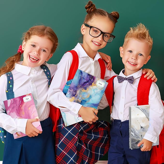 - Book cover kit: This pack comes with 12pcs stretchable book covers in 6 different marble print styles, along with a sheet of name tag labels. These jumbo book covers fit books measuring 9x11 inches and can stretch up to 10x12.5 inches.