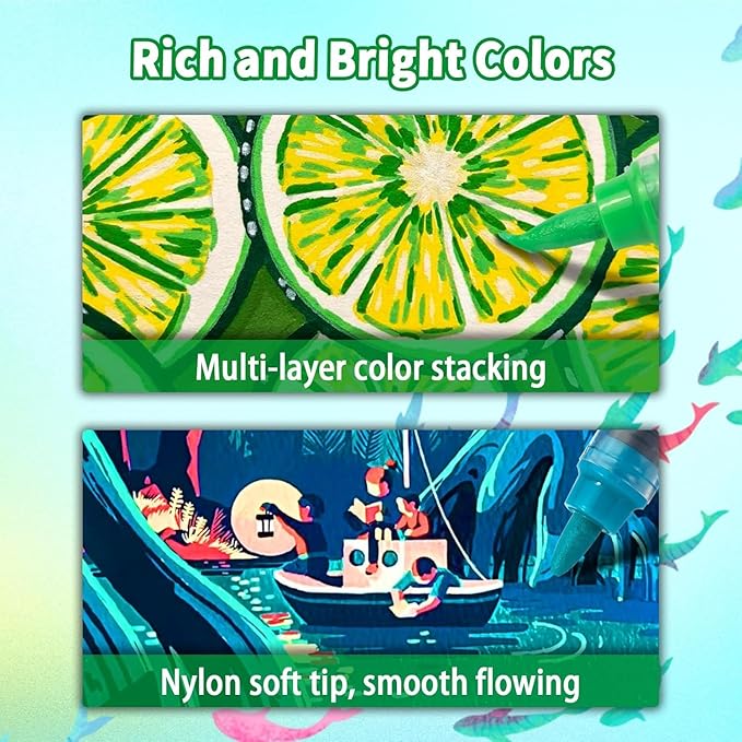 - 【Upgraded Automatic Ink-Control System】The fabric markers drawing supplies adopted the latest unique automatic ink-control system, ensuring flexible and even ink flowing. Enjoy the control of acrylic paint marker with pre-activated nylon soft nib for a paint-like finish