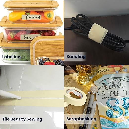 - SAFE MATERIAL & WRITABLE: The beige white paper painting tape is made from high quality crepe paper, which is non-toxic, acid-free and odorless, making it safe to use. You can write anything on the masking tape with various pens and it shows up clear. Great for crafts, arts, DIY projects, organizing, decorating etc.